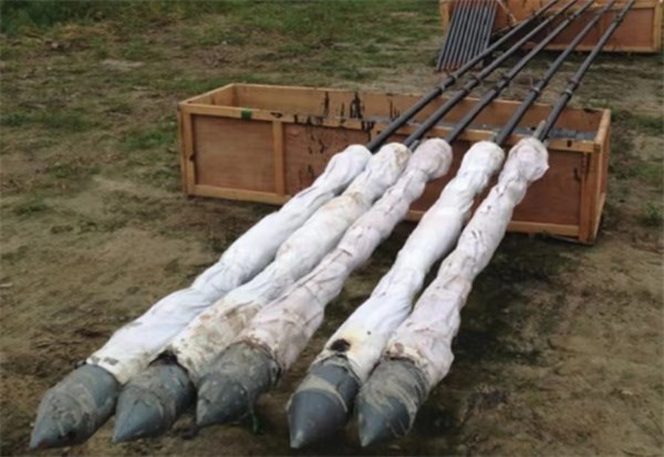 (4)锚杆体下到孔位后,要测量顶部标高,做到整体平整。